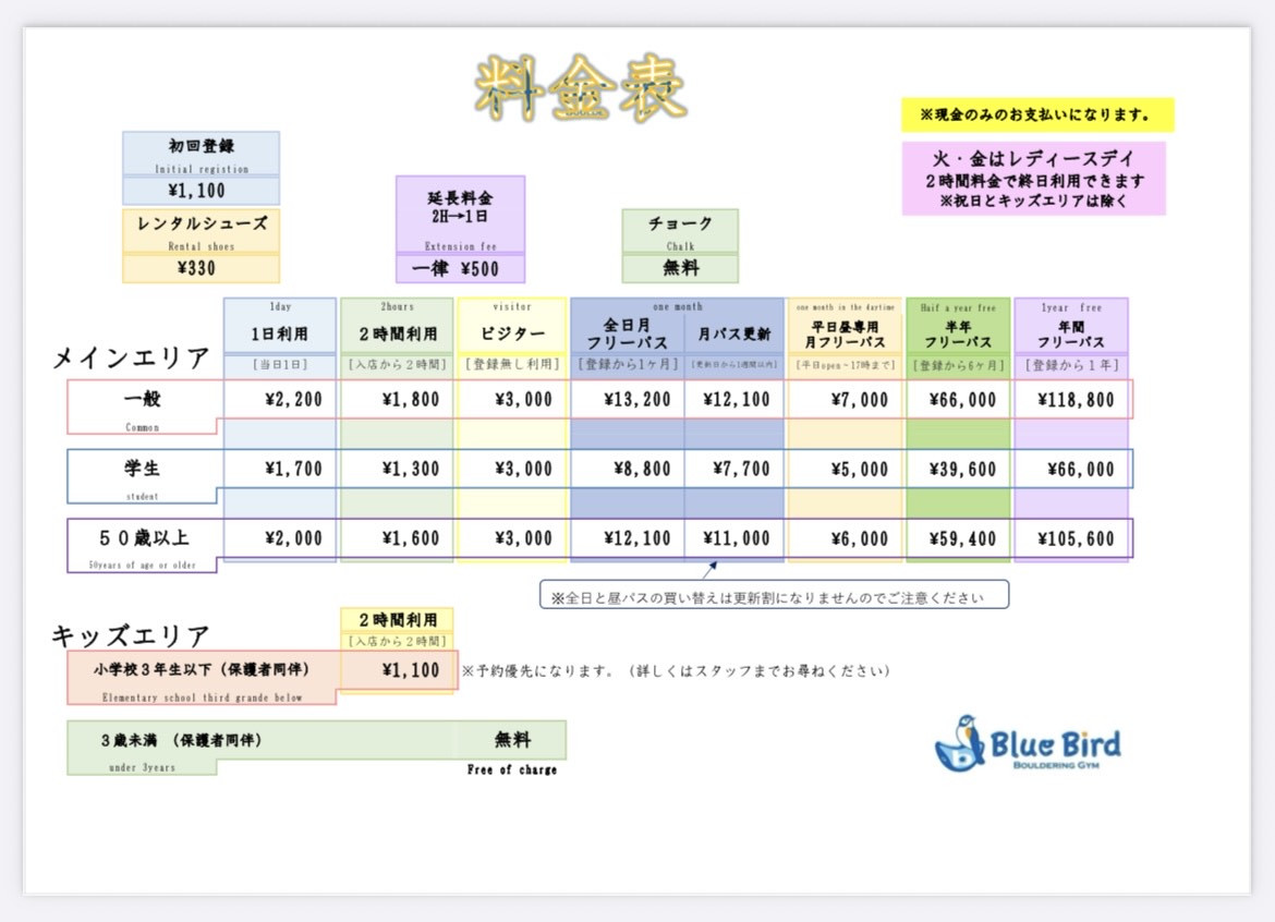 いつもBlue Bird BOULDER GYMをご利用いただきありがとうございます。